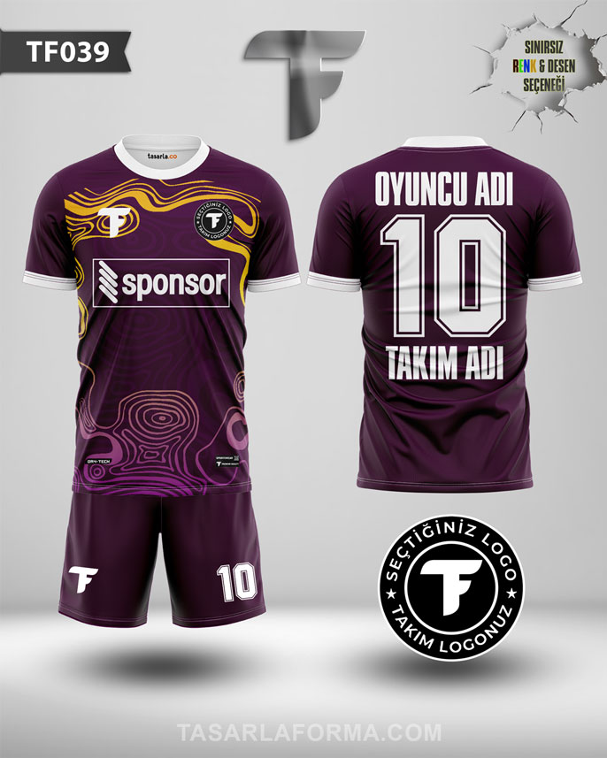 Çizgi desenli mor futbol forması ile takımınıza şık ve enerjik bir görünüm kazandırın. İhtiyacınıza göre şort ve çorap eklenerek takım halinde üretim yapılır.