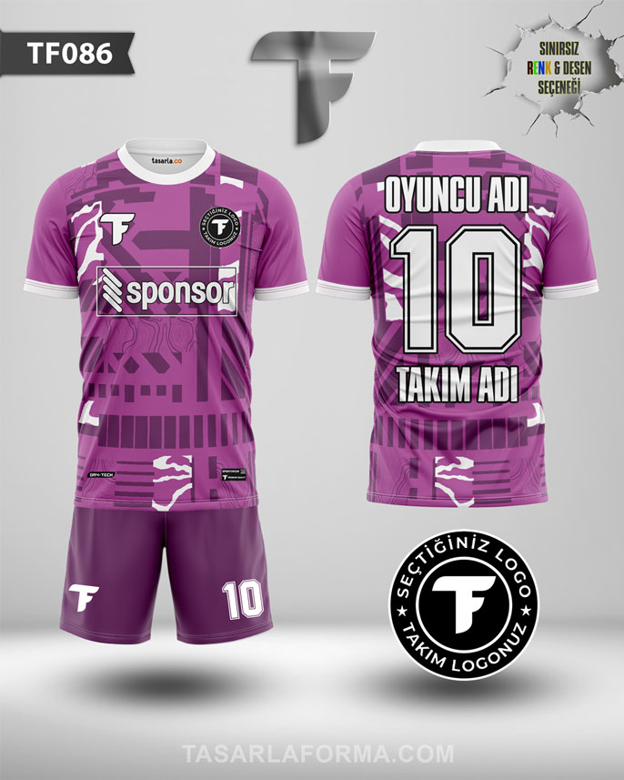 Mor çizgi desenli futbol forması, takımınıza özel tasarım imkânı sunar.