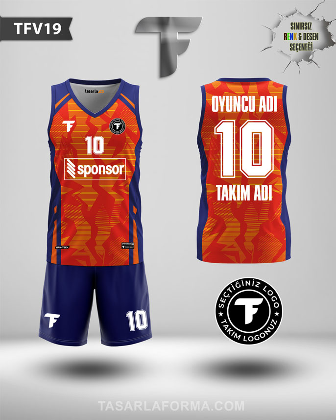 Turuncu Desenli Mavi Voleybol Forma Tasarlama TFV19